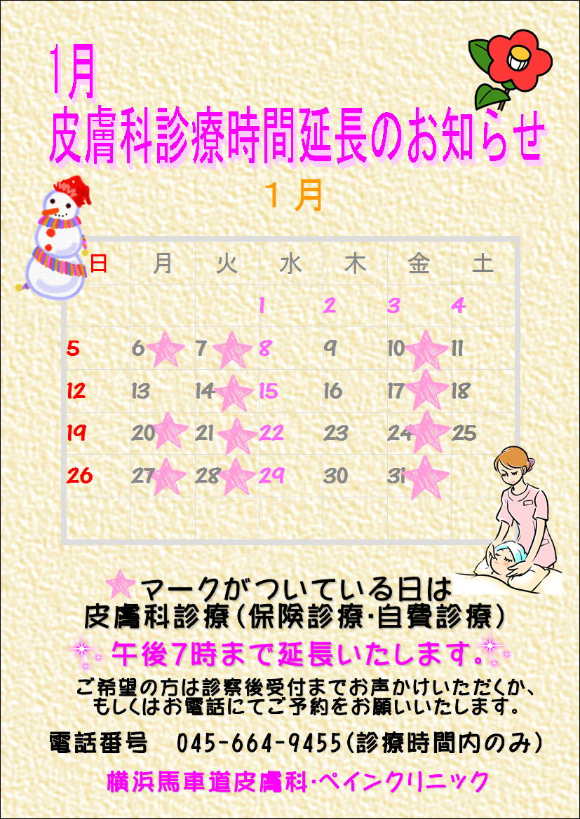 クリニックは12月29日(日)~1月5日(日)まで年末年始休暇を頂戴しております。